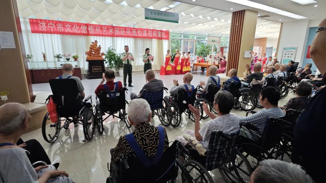 为庆祝中国人民解放军建军98周年,8月1日上午,济宁市文化馆组织儒风艺术团红色文艺轻骑兵走进凤凰怡康护理院,开展"庆八一·致敬老兵"慰问演出活动,为退伍老兵和老年朋友们送去“建军节”的问候和精彩的文艺节目。